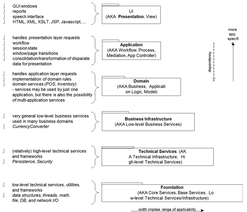- lower-level (Technical Service, Foundation) layer들은 대체가 불가능하지만 UI, Application, Domain layers들은 대체가 가능하다.