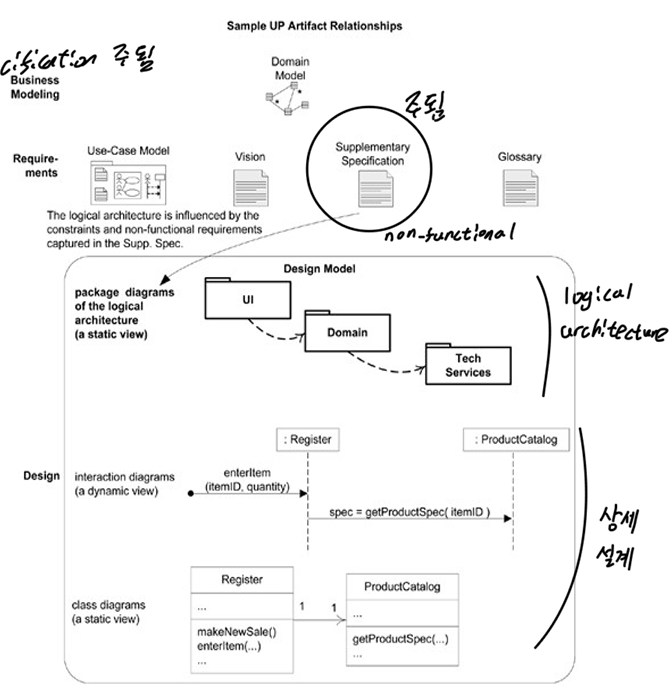 여기서 Logical Architecure는 packages, subsystems, layers로 구성된 software classes들로 구성되어 있다.