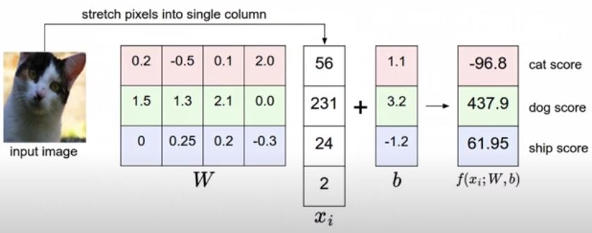 - 처음으로 행렬을 쭉 편다. -> 이미지는 [3072x1]이 된다.